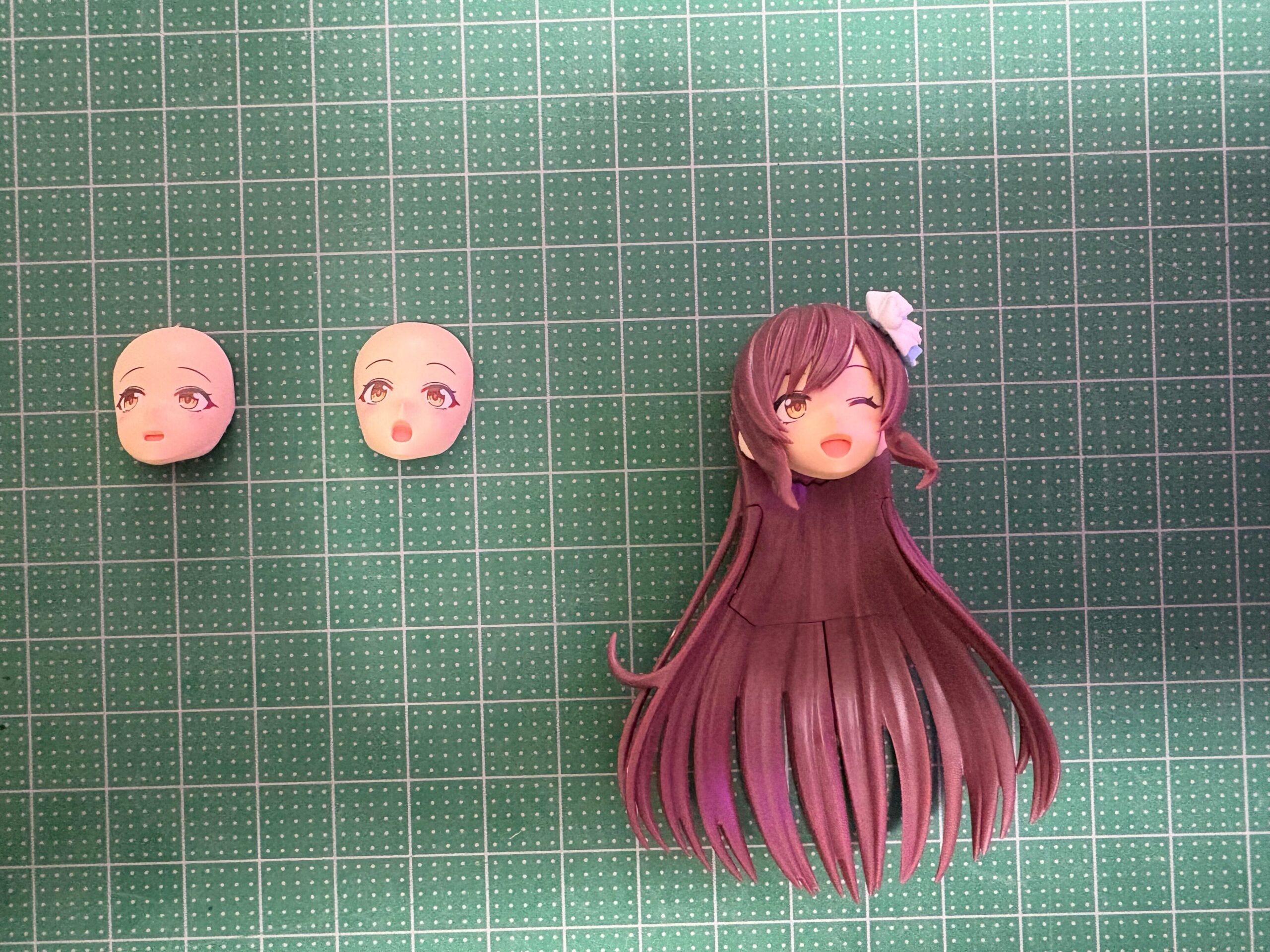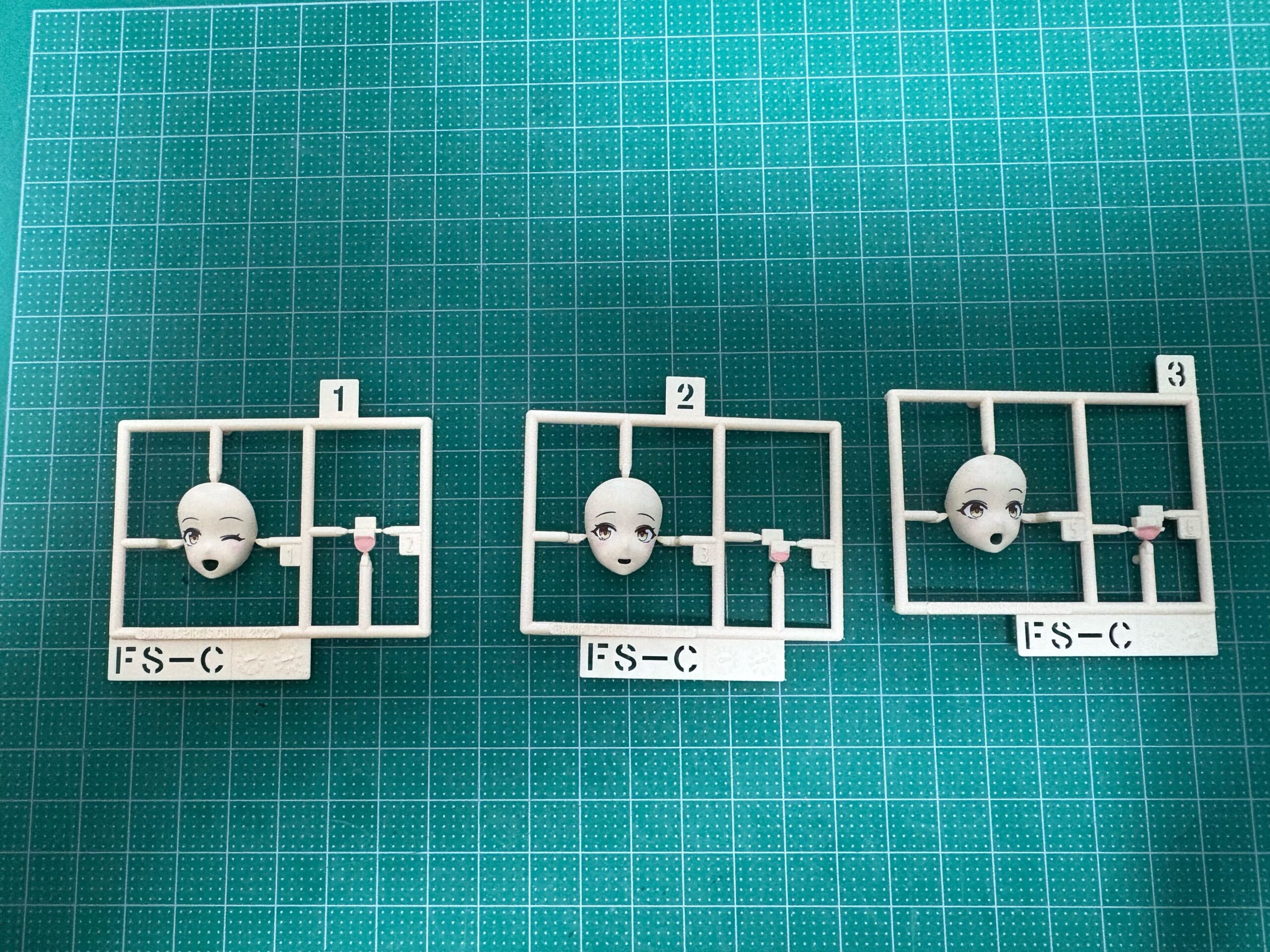髪の毛と顔のパーツです、顔はタンポ印刷という最初から顔のパーツに印刷してあり、口は別パーツでの