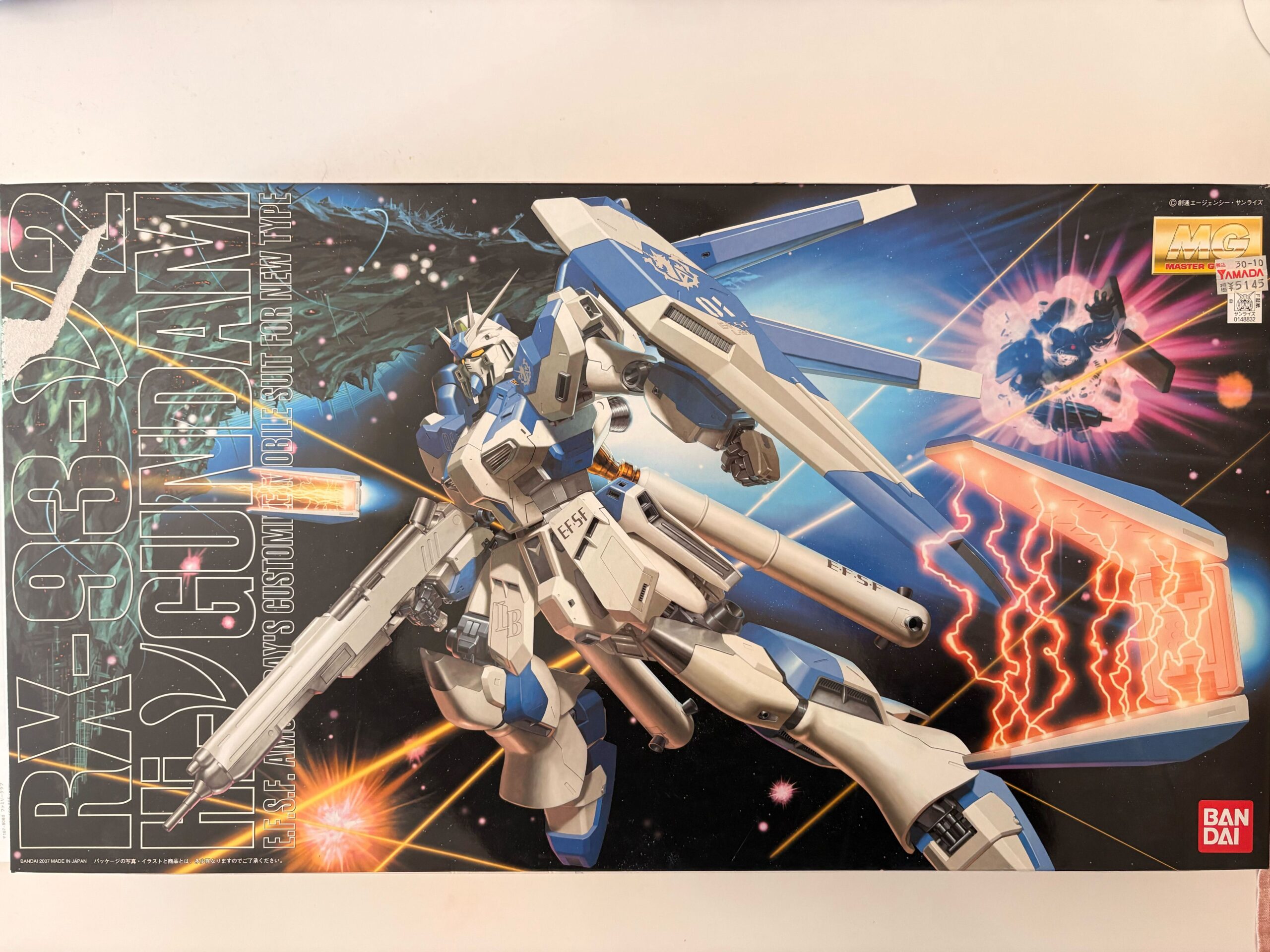 今回制作するキットはこちらです、約19年前の発売日にずっと積んでおったMG Hi-νガンダムを作っていきます。